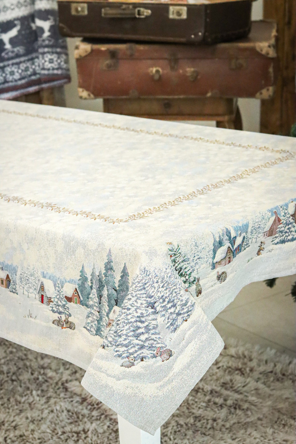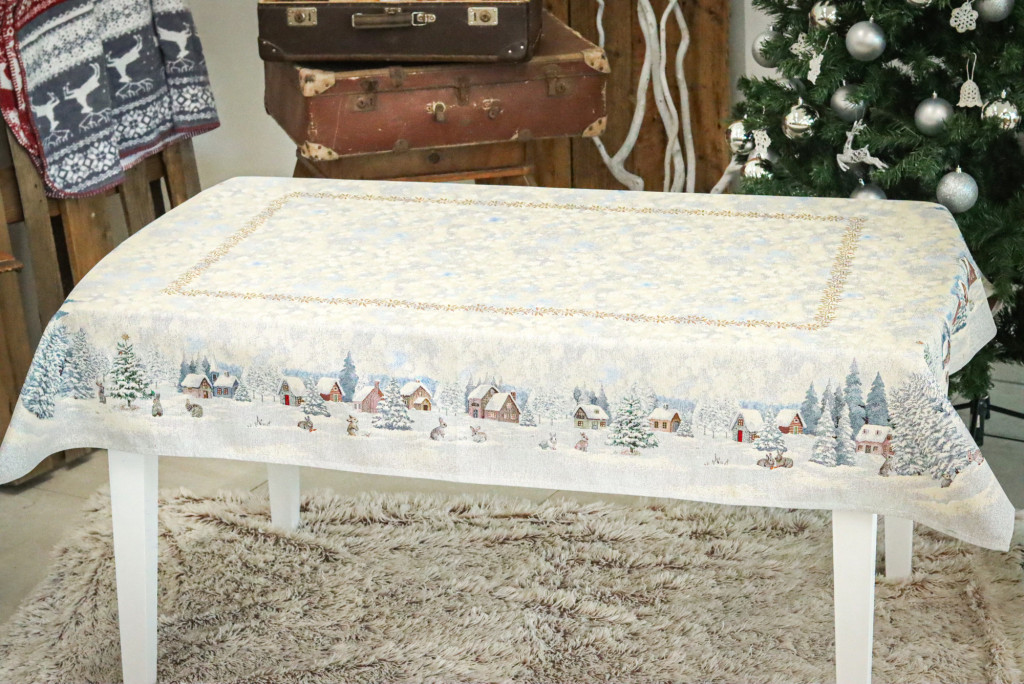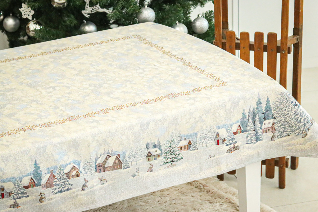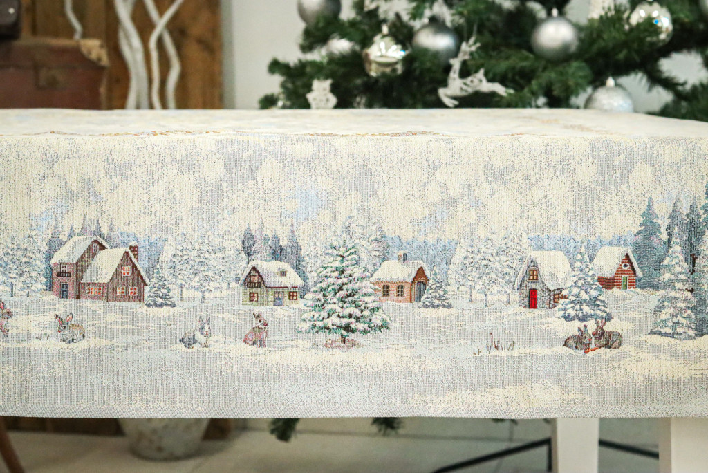 White forest, nyuszik a hóban kollekciónk asztalterítője minden lakás enteriőrjébe könnyen beleilleszkedik. Gyönyörűen mutat az ünnepi asztalon, ezüstös csillogása feldobja a karácsonyi étkezéseket. Megfelelő kezelés mellett hosszú éveking megőrzi szépségét és minőségét.