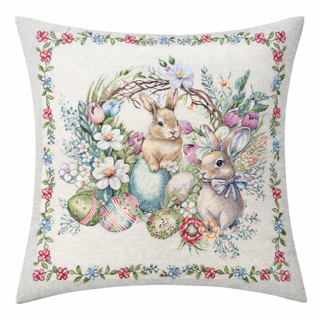 Gépi szövésű spanyol gobelin párnahuzat – húsvéti, mesés tavaszi design